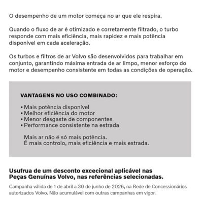 Queremos ajudá-lo com o seu negócio. E, para isso, queremos antecipar as suas necessidades com as nossas campanhas de Serviço e Peças Genuínos Volvo.